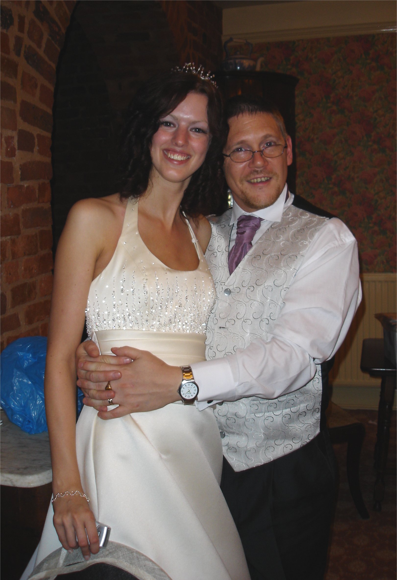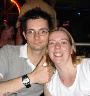 N.B. I've flipped these round so I can update from the top! Us at Kirsty and PC's wedding 11/9/05(with my turqoise hair) ![]()